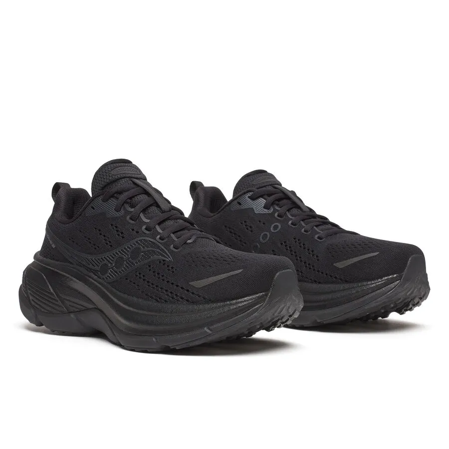 Engineered for runners seeking maximum cushioning and natural stability, the Saucony Hurricane 25 Women's Shoes deliver a premium experience from the first step to the last mile. Built with a fully redesigned geometry, this model offers a softer and lighter ride while maintaining superior support for daily runs. Featuring dual-layer cushioning, the Hurricane 25 pairs responsive PWRRUN PB superfoam directly underfoot with a stable PWRRUN foam frame beneath, creating a plush yet balanced stride. The shoe’s new CenterPath technology gently cradles the foot with raised midsole walls, promoting smooth, guided transitions without the stiffness of traditional stability shoes. A breathable, engineered mesh upper provides a secure, sock-like fit, and the durable XT-900 rubber outsole ensures long-lasting traction across varied road conditions. Designed with sustainability in mind, this model is vegan and incorporates recycled materials, delivering top-tier performance with a lighter environmental footprint. Whether you're logging everyday miles or recovering from intense sessions, the Hurricane 25 is crafted to support your pace and your purpose.