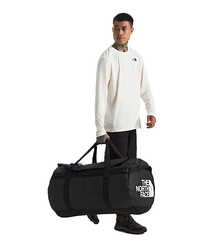 Extreme environments call for rugged durability. That’s why we built the Base Camp Duffel. Trusted on the world’s toughest terrain since ’86, this bag was created as a nearly indestructible storage solution for Himalayan expeditions. Today it remains an instantly recognizable symbol of craggy innovation—its legendary stories are told in scuff marks. Reborn as the ultimate 132-liter travel bag, the burly Base Camp fabric is water and tear-resistant for protection against rough handling and even rougher weather. This is the last bag you need. This is an icon.