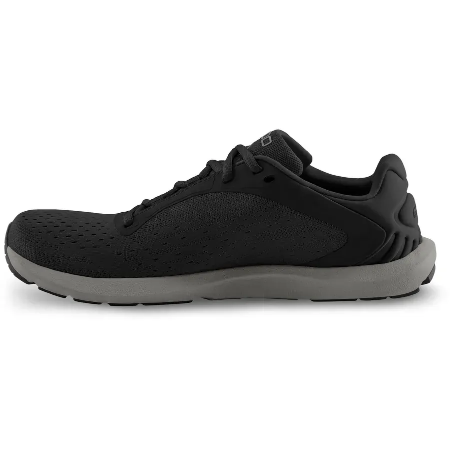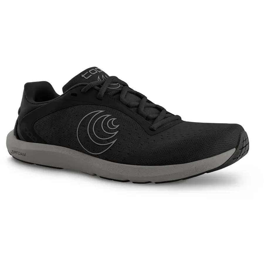 Designed for runners and gym-goers who prefer a minimal yet supportive shoe, the Topo ST-6 Men's Shoes deliver a natural, barefoot-like experience without compromising on protection or comfort. This lightweight road running shoe weighs in at just 187g and features a zero drop platform for a more grounded and balanced stride. The shoe's ZipFoam midsole delivers a subtle layer of low cushion, while the Ortholite insoles add resilient, antimicrobial comfort. The signature Topo roomy toebox encourages natural toe splay, enhancing stability and comfort during dynamic movement. The upper is crafted from an engineered mesh that promotes airflow and adapts to foot shape, while the collapsible heel counter allows for additional versatility and packability. A durable rubber outsole offers reliable traction on pavement. Thoughtful use of recycled materials supports an eco-conscious design.