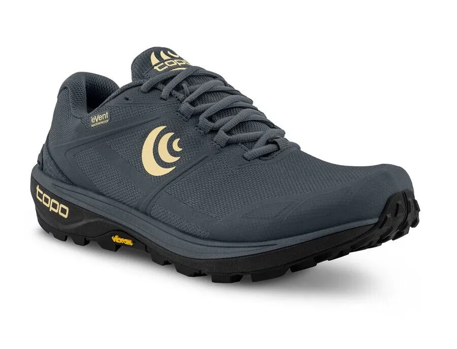The Topo Terraventure 4 Waterproof Womens Shoes are ready when the weather’s not, letting you hit the trail without delay, no matter the forecast. Whether mud-slick switchbacks or rainy ridge lines, these trail runners bring together lightweight agility, rugged protection, and waterproof confidence. With an eVent upper that blocks out the elements, Vibram Megagrip outsole for unstoppable traction, and Topo’s signature roomy toe box, your strides stay natural, stable, and sure-footed. From soggy singletracks to misty scrambles, this shoe turns wet-weather treks into all-day adventures.