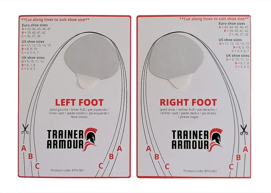 PREVENTS AND REPAIRS BIG TOE HOLES: It is best to insert Trainer Armour in new trainers, running shoes or fabric footwear to prevent big toe holes, but can also be used to fix a hole when it first becomes visible. Don’t replace expensive trainers, running shoes and fabric footwear because of big toe holes, fit Trainer Armour Big Toe Hole Preventer.