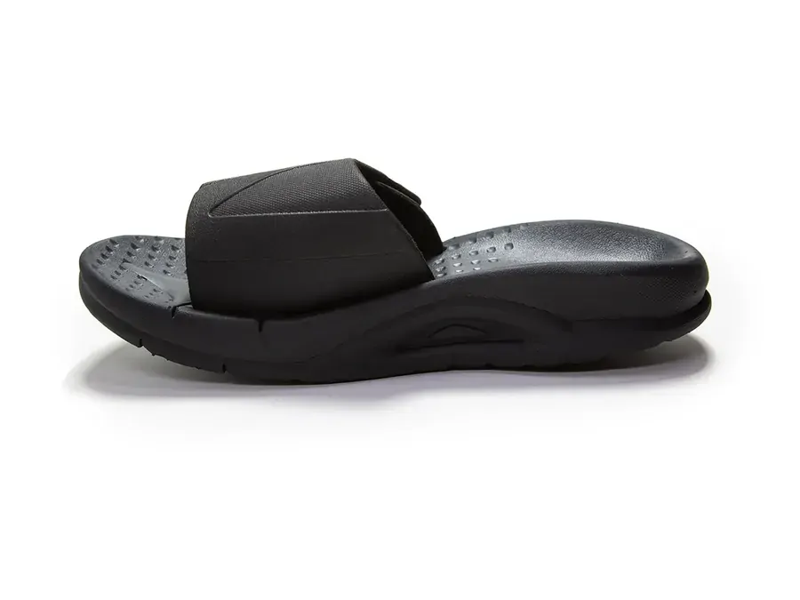 The Adjustable Active Slide is packed full of features that will not only provide amazing comfort, but also allow your feet to recover from intense activity. With the Tri-Motion Technology, these slides start with supportive cushioning at the heel, then roll to optimum arch support and finishes with forefoot flexibility to allow your feet to stretch and relax. All this on a soft layer of foam combined with a firmer outsole layer for durability, better stability and support. With the adjustable strap upper allows you to customize the fit across your instep, amazing comfort that can be worn with or without socks.