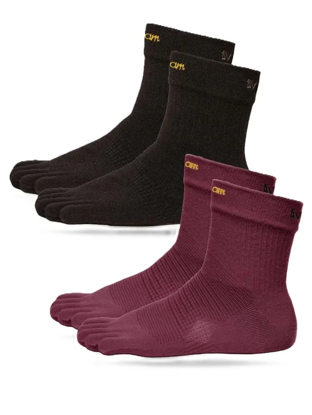 Mid-weight performance toe socks that sit just below the calf.