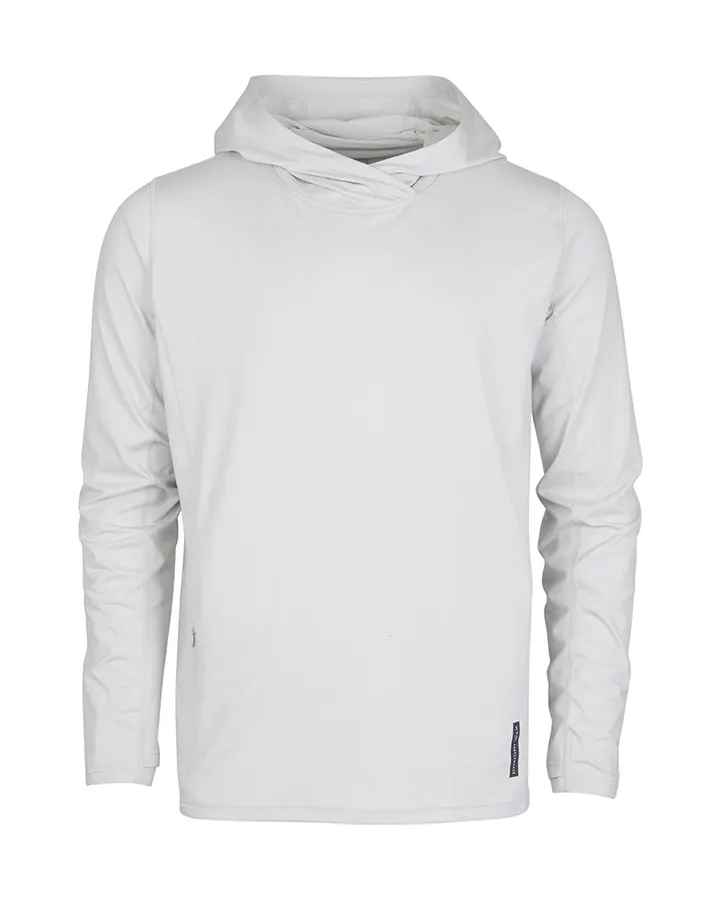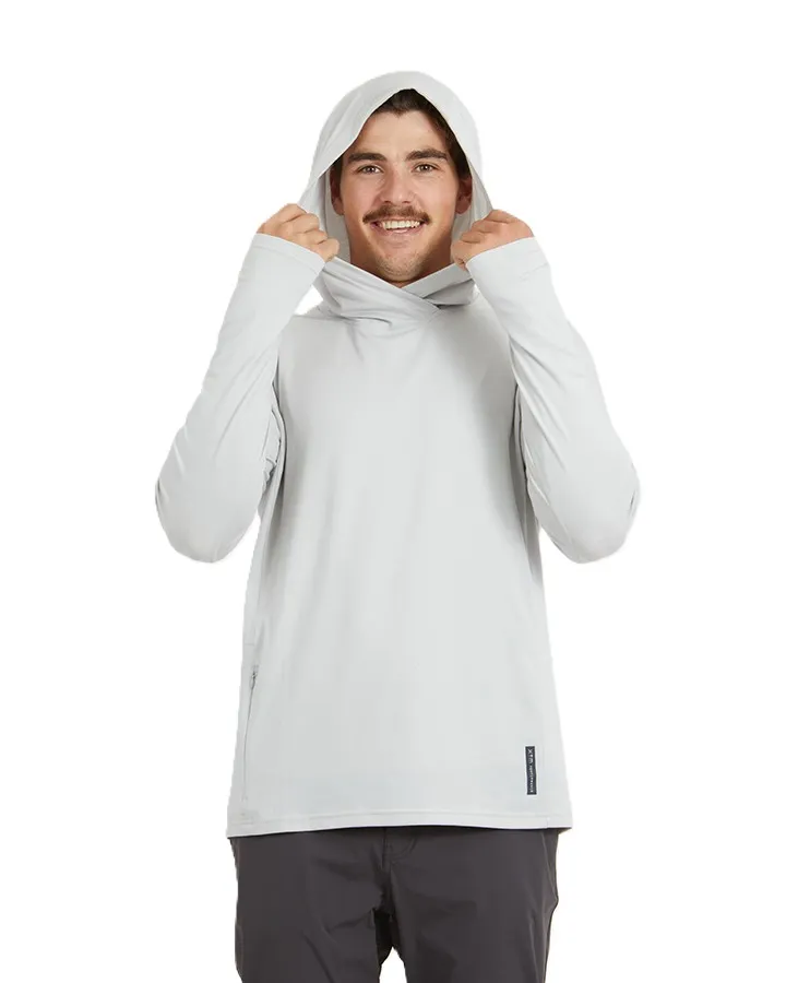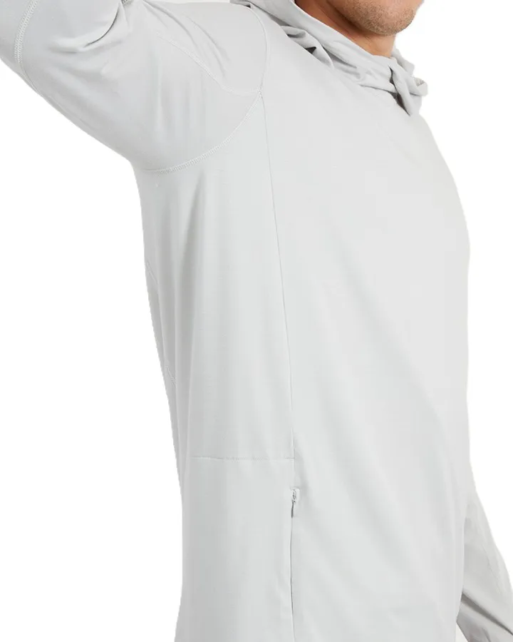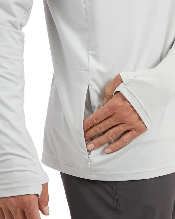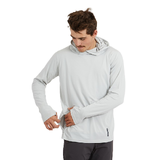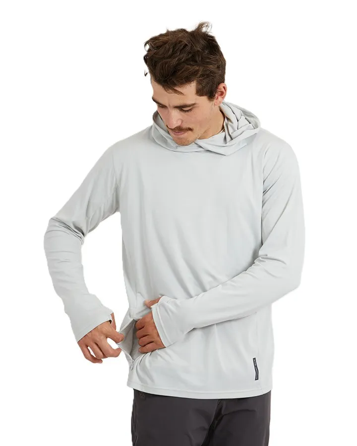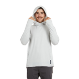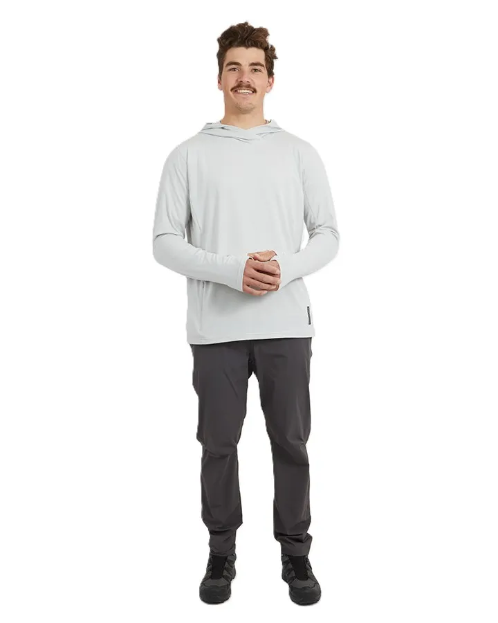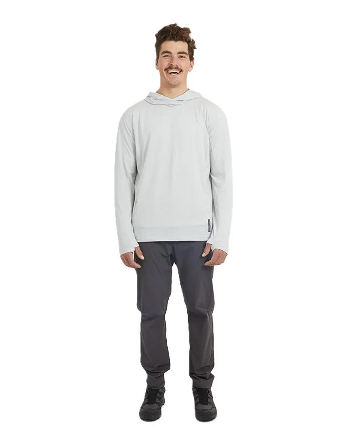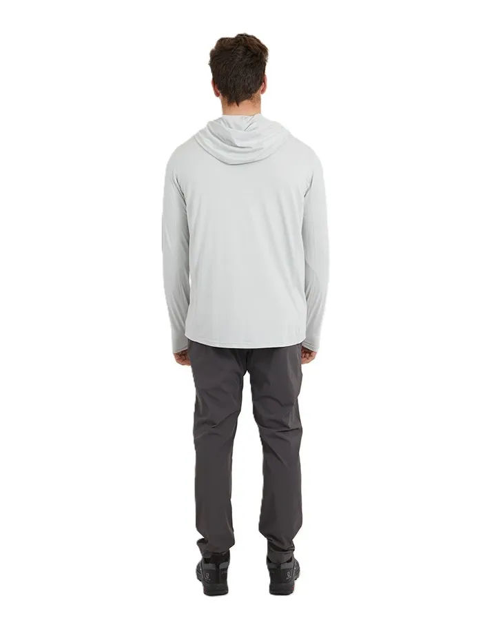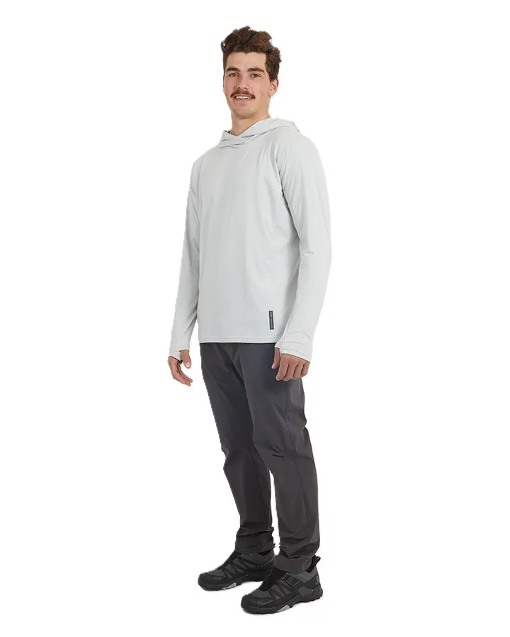 Lightweight men’s sun hoodie made from recycled, breathable fabric with UPF 50+ protection, odour control, and functional features for all-day outdoor wear.